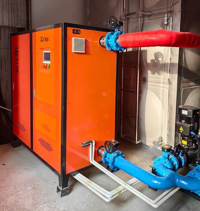 采用总功率:350KW 储能式控制机组(1台350KW),配合40m³的蓄热设备。每晚利用谷电时段 进行储能加热,供暖效果良好。